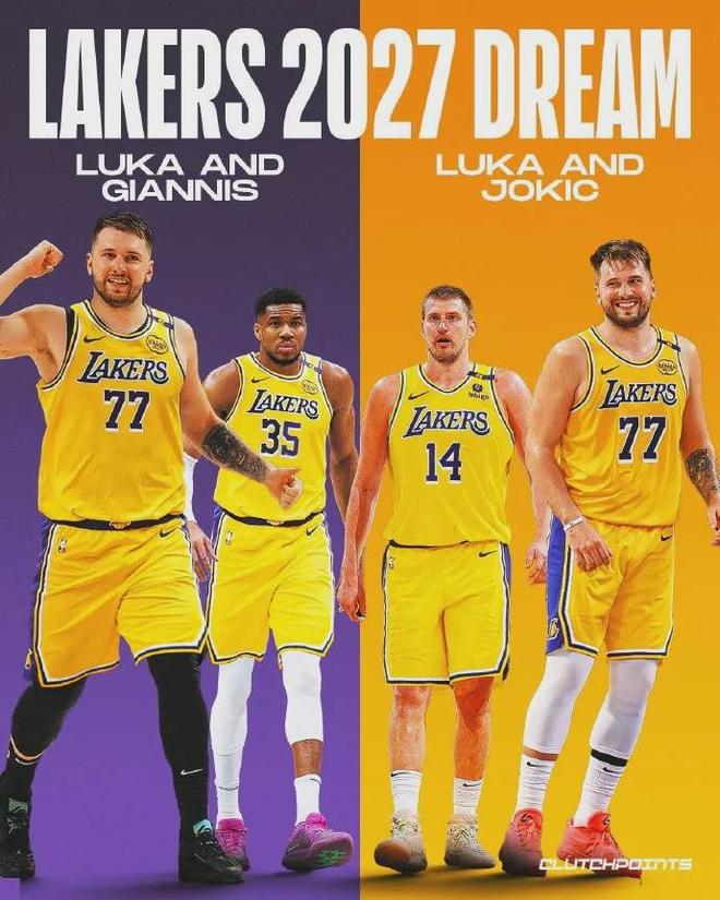 简单来说,25-26赛季大概率是湖人以东契奇+詹姆斯+里夫斯三巨头为核心框架的最后一年,明夏过后只有东契奇一人留队。据此前的报道,27年夏天湖人会有大动作,追求字母哥或约基奇联手东契奇,以最快速度重拾紫金军团光环。