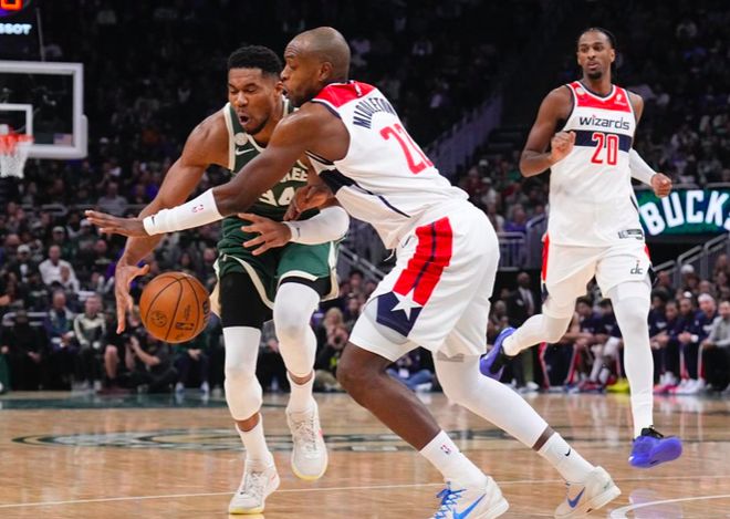 7人上双居然惨败!字母哥37+14降维打击,火箭旧将首秀14+5