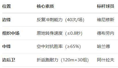 要在欧洲顶级联赛(英超、西甲、德甲、意甲、法甲)立足,球员的身体素质已不仅是“基础条件”,而是决定能否在高节奏、强对抗、密集赛程中生存的核心竞争力。以下是欧洲俱乐部球探和体能教练公认的关键身体指标及训练逻辑: