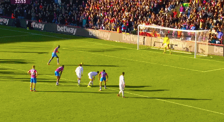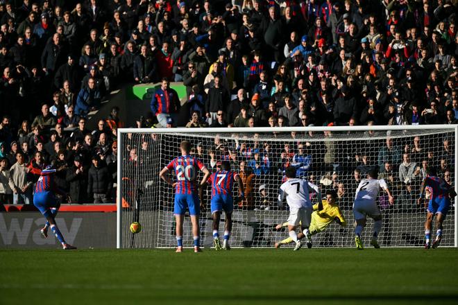 第36分钟,马特塔重罚点球,右脚推射球门右下死角得手,水晶宫1-0领先!